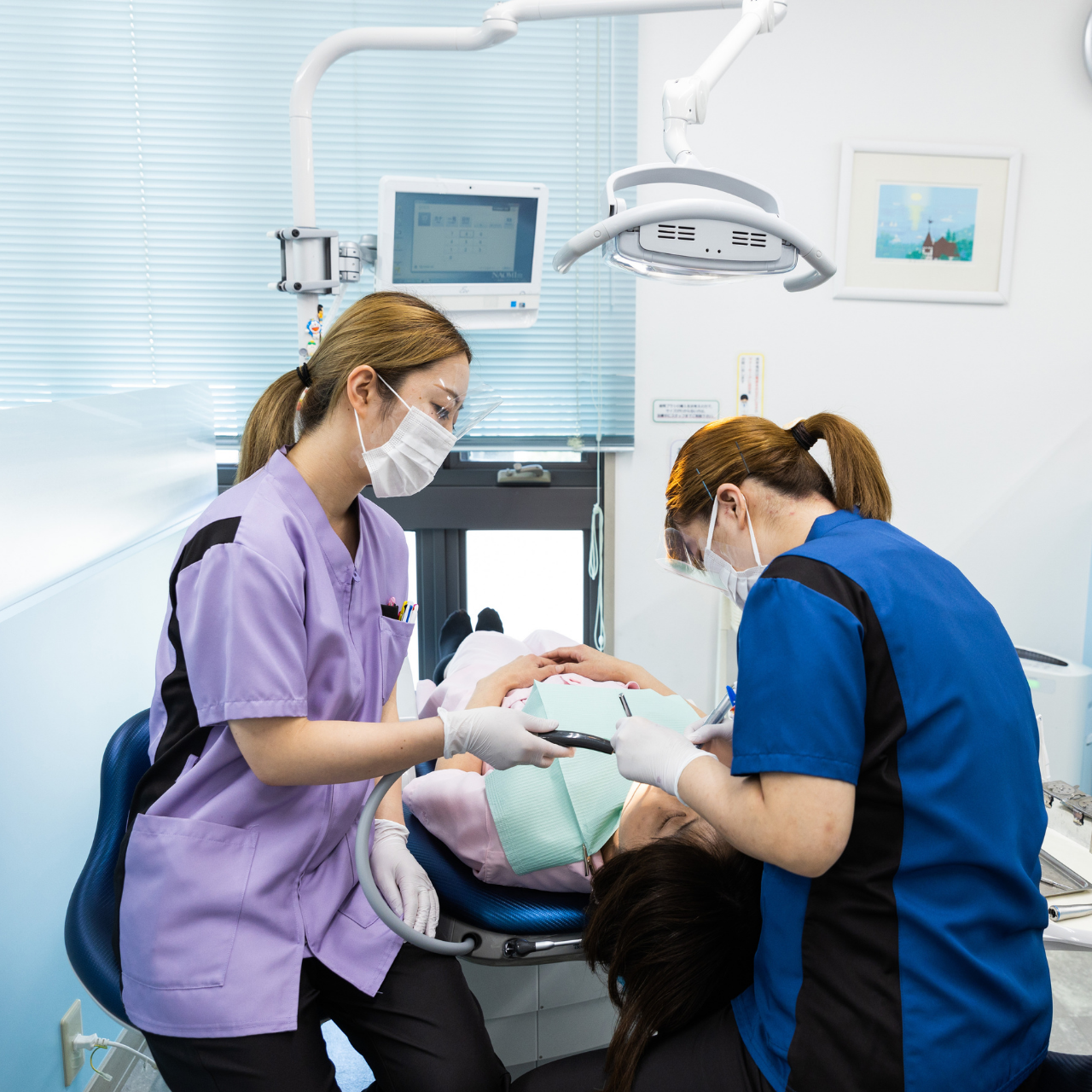 当院では、歯科衛生士と他職種の役割を分けており、クリーニングやTBI、歯周治療などの業務を中心に担当しま す。受付清掃や駐車場清掃などは担当外のため、歯科衛生士としての業務に集中できる体制です。