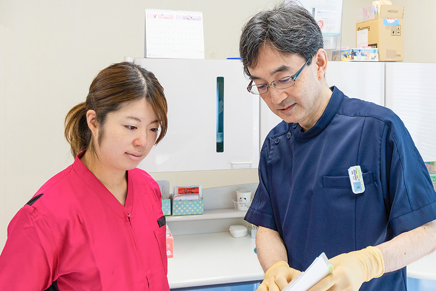 月に1回、院内で勉強会を開催して、スタッフ全員での情報共有を行っています。外部から講師を招いて、積極的に最新の知識や技術を取り入れるようにしています。
