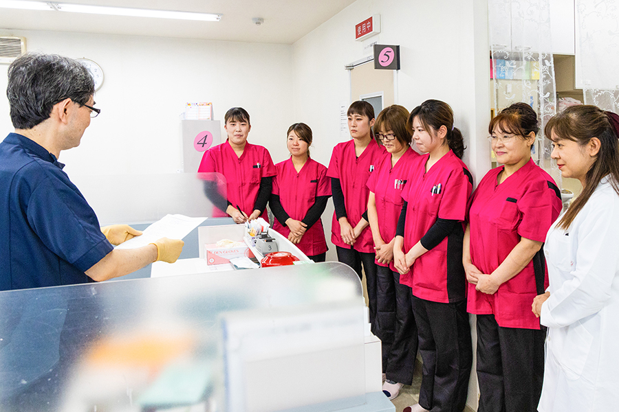 30分から1時間程度の勉強会を随時行っています。診療時間内、もしくは診療終了後に行われますが、診療終了後の場合は、残業手当が支給されます。