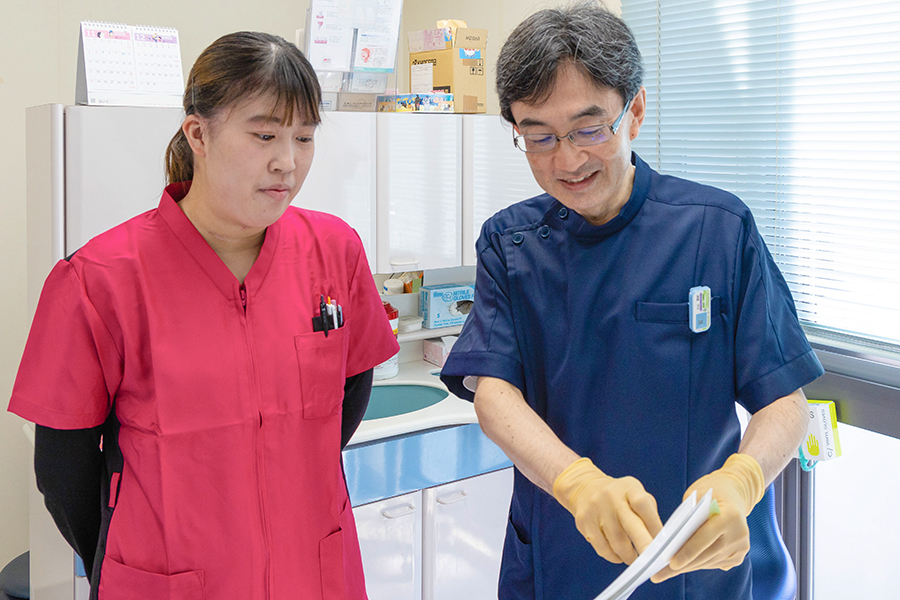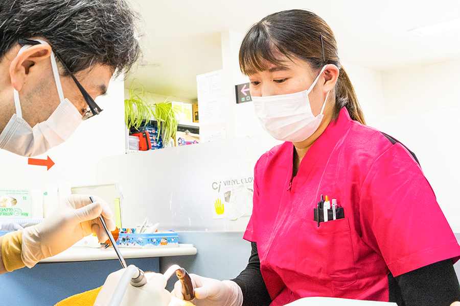 歯科助手の方には、診療補助や診療機器の準備・後片付けなどの業務をお願いしています。患者さまが安心してスムーズに治療を受けられるように、アシスタント業務がメインとなります。