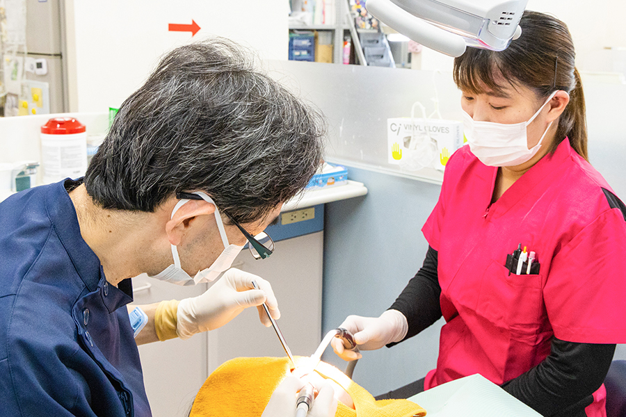 歯周病の症例も多く、担当制で診療を行っているため、歯科衛生士として歯周病治療の経験を積むことができます。日々の診療の中で、実践的に学べる環境です。